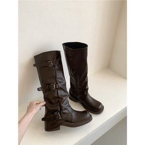 厚底粗跟褶皱长筒靴女2025新款秋冬季女靴辣妹堆堆裤管靴骑士靴子