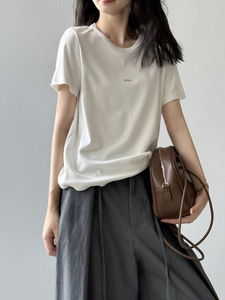 言双 休闲圆领加厚磨毛短袖T恤女秋季内搭宽松显瘦打底上衣20183