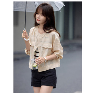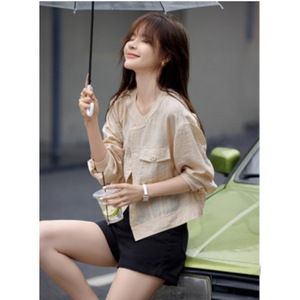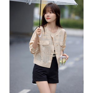 夏日气质通勤麻感透气超薄开衫2025夏新款不对称圆领外套