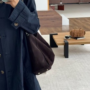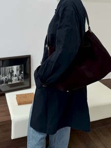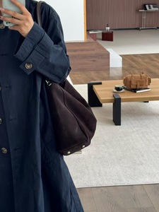 韩国新款磨砂牛皮托特包大容量简约单肩斜挎包复古牛皮绒腋下女包