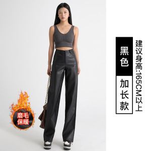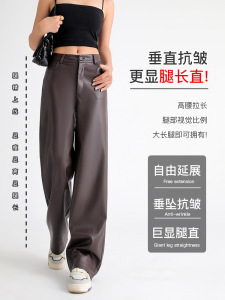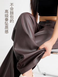 新款皮裤女秋冬高腰显瘦宽松阔腿裤美式垂感窄版PU皮休闲直筒裤子