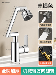 全铜洗脸面盆水龙头洗手盆厨房洗菜池卫生间单冷热万向机械臂防溅