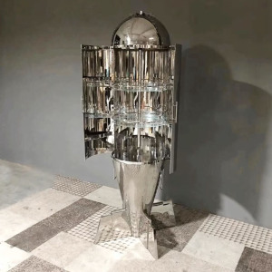 轻奢不锈钢酒柜别墅家用客厅设计师款储物柜艺术玻璃火箭形展示柜
