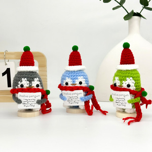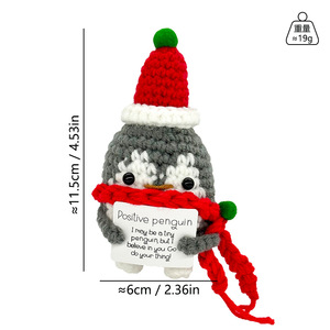 跨境亚马逊手工钩织玩偶圣诞节礼物圣诞企鹅情侣企鹅正能量表情包