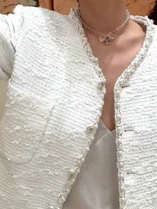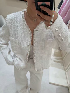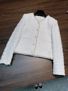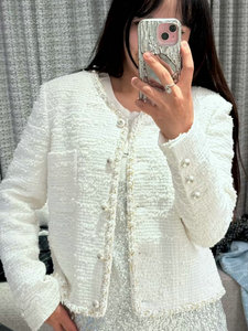 专供南油秋冬时尚新款粗花呢珍珠短外套气质优雅小香风圆领开衫女
