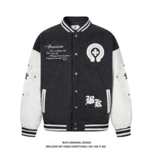 美式复古嘻哈高街十字架刺绣棒球服外套夹克男女同款国潮牌欧美风