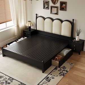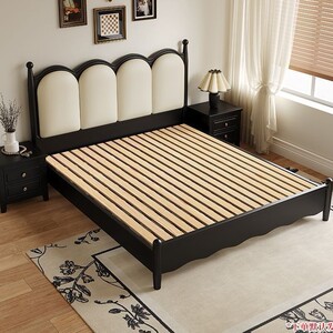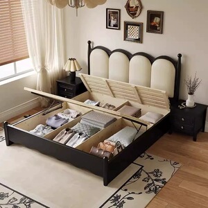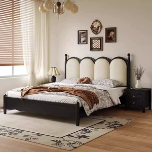 法式复古黑色实木床中古风小户型1.5m简约轻奢软包婚床1.8m储物床