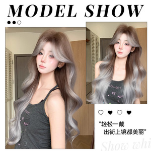 【极光轨迹】假发女美式挑染时尚修脸个性亚裔自然长卷发整顶假发