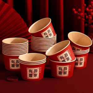 一次性结婚纸碗家用喜庆风加厚吾家有喜中式喜字红色喜碗婚宴专用