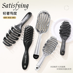 极光轻奢排骨梳高颅顶蓬松梳子女士专头皮按摩家用卷发镂空梳子