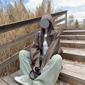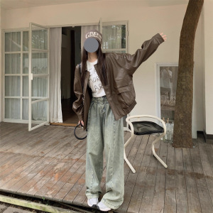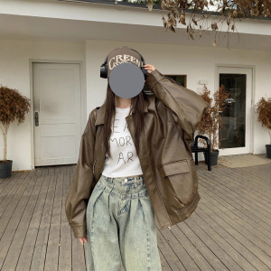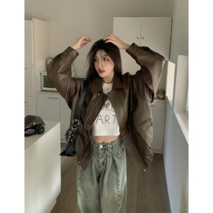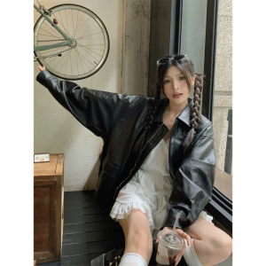 美式复古皮衣夹克外套女早春黑色甜酷风机车PU皮宽松修身长袖上衣