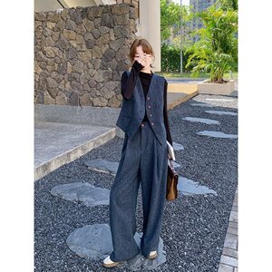 一整套穿搭叠穿马甲套装女秋季新款百搭感气质高腰阔腿长裤