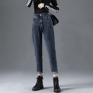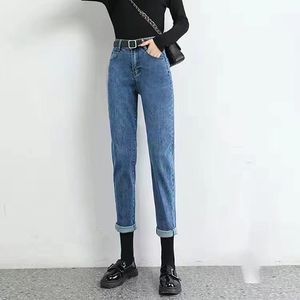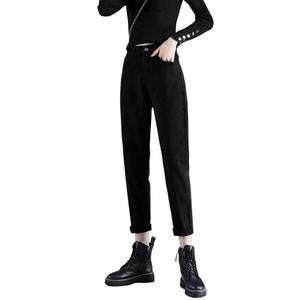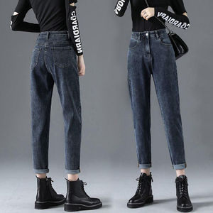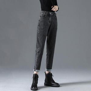 弹力高腰牛仔裤女秋冬2025新款宽松显瘦直筒百搭哈伦萝卜老爹裤子