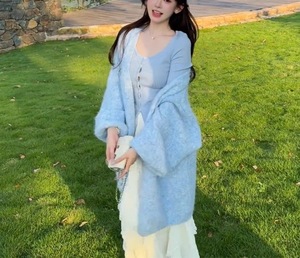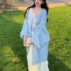 今年流行女装新款针织开衫巨好看氛围感韩版温柔系泡泡袖毛衣外套