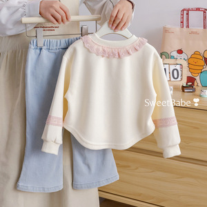 儿童秋季套装2025新款秋装卫衣牛仔刺绣长裤春秋款女童洋气两件套
