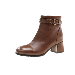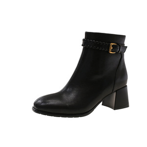 头层羊皮粗跟马丁靴女2025秋季新款侧拉链休闲百搭短靴瘦瘦靴女靴