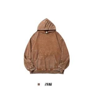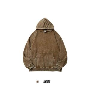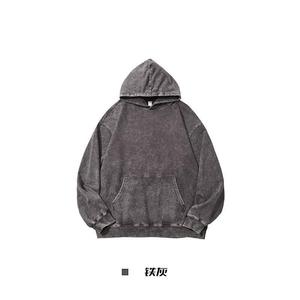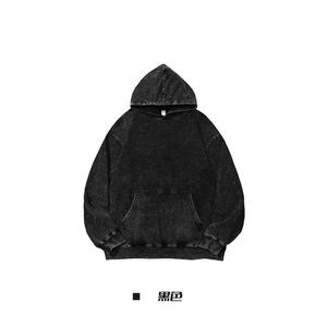 350g水洗做旧连帽纯棉卫衣定制LOGO炒雪花潮流男女秋冬款宽松蜡染