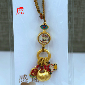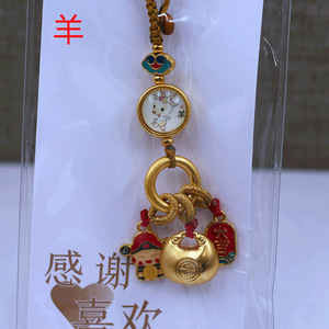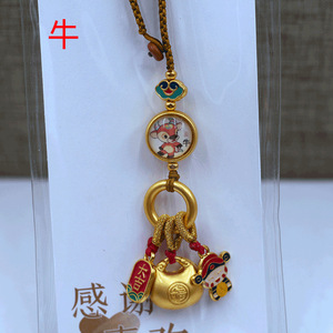 新款国潮古法金双面十二生肖钥匙扣 平安锁小挂件包包装饰品批发