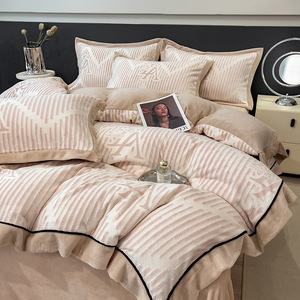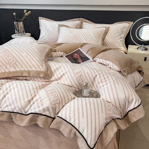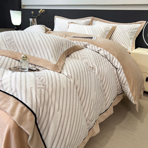 高克重牛奶绒四件套床上用品新款宿舍三件套拼角烂花压线床单被套