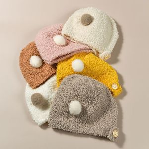 婴儿帽子秋冬季小月龄可爱超萌保暖男女宝宝护耳毛绒套头帽纯色潮