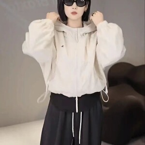 2025春秋新款短款连帽外套小个子休闲宽松冲锋衣夹克上衣女装