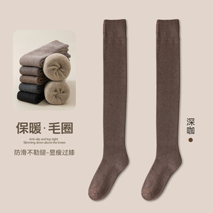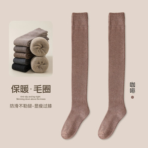 过膝袜子女长筒袜秋冬毛绒袜加绒加厚小腿袜冬季长腿纯色护膝袜套