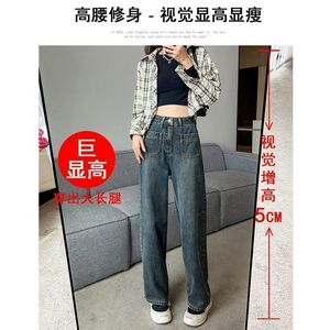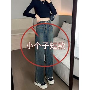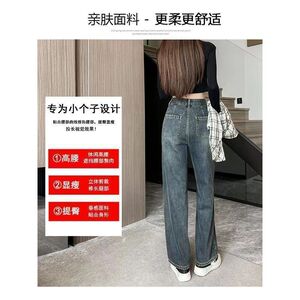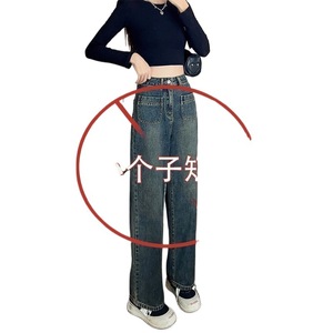 复古蓝牛仔裤女加绒小个子秋季显高搭配高腰显瘦直筒裤窄版阔腿裤