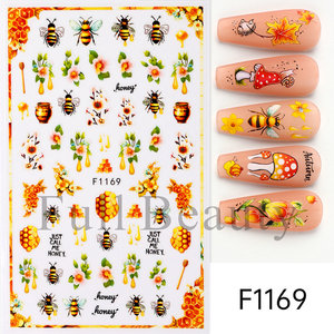跨境新款美甲贴纸秋季感恩节枫叶丰收蘑菇榛子蜂蜜黄色叶子指甲贴