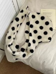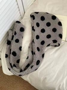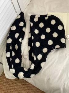 韩版可爱波点羊羔毛帽子围脖一体套头帽女秋冬骑行保暖防风雷锋帽