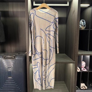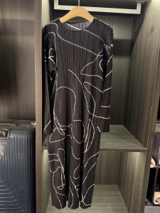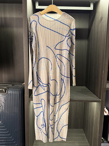 初秋新款气质简约时尚印花圆领连衣裙女高级感休闲大码长袖中长裙