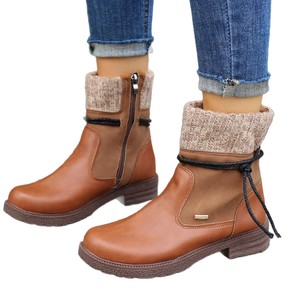 低筒新款欧美针织皮靴大码女2025外贸圆头年马丁靴女方跟黑色棕色
