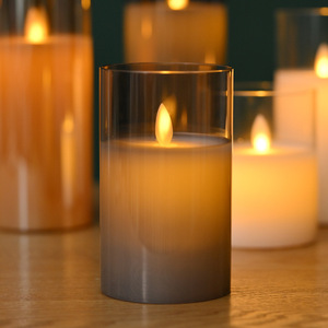 创意玻璃蜡烛小夜灯摇摆灯芯led电子蜡烛灯ins卧室桌面装饰氛围灯
