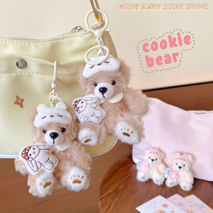 新款饼干小新系列晚安小熊毛绒公仔钥匙扣精致女生背包挂件货源