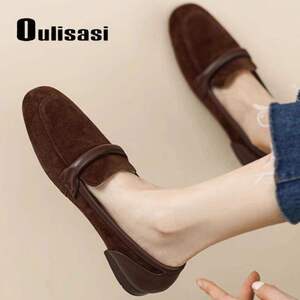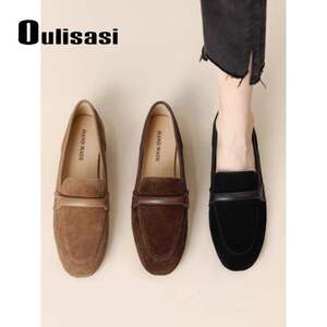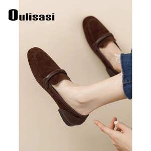 Oulisasi巨巨好穿~软皮软底一脚蹬百搭乐福鞋女复古牛津平跟单鞋
