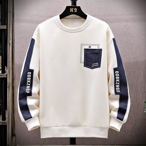 圆领t恤男长袖秋冬款拼色休闲上衣套衫男生拼接潮流卫衣痞帅男装
