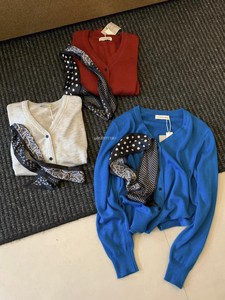 MZI STUDIO秋季韩系氛围感百搭显瘦单排扣针织开衫119301(配丝巾)