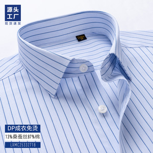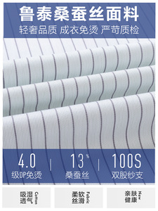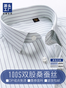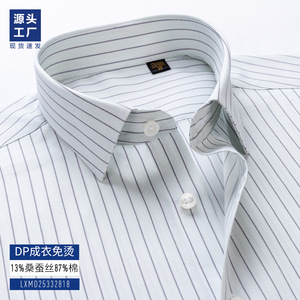 高级感轻奢桑蚕丝衬衫男式长袖休闲衬衣短袖免烫绿色条纹源头工厂