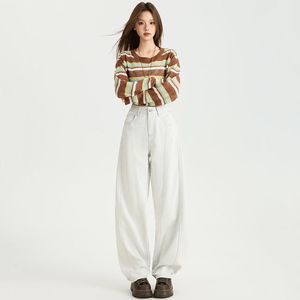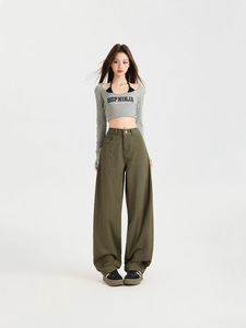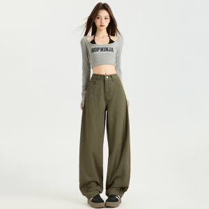 秋季爆款美式复古侧缝拉高设计宽松显瘦弯刀百搭时尚拖地牛仔裤女