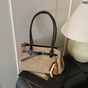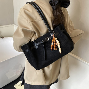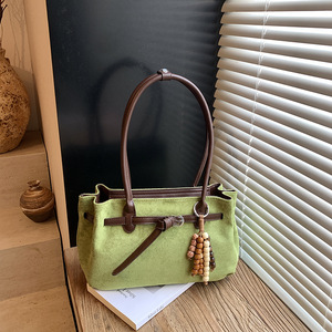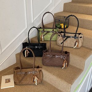 复古百搭精致托特包包女2025秋季新款潮大容量绒面简约单肩腋下包