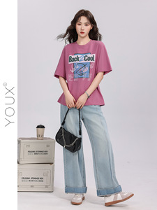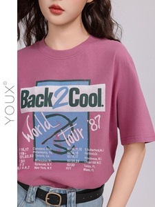 又巷【港岛暮色】字母印花短袖t恤女2025夏新款复古时尚百搭上衣
