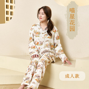 【严选联名】安旦家居服四层秋冬竹棉纱布亲子装月子服女士套装