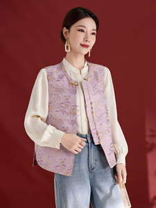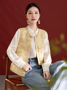 新中式个性提花盘扣桑蚕丝马甲女装显瘦开衫2025秋季新款气质1321
