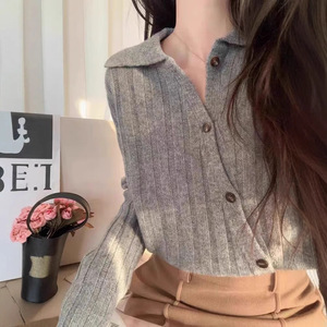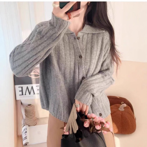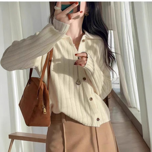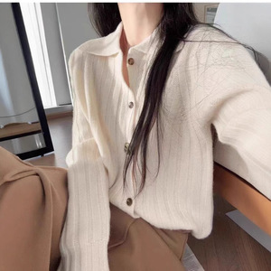 韩版纽扣翻领加厚100羊毛开衫秋冬新款女麻花长袖羊绒打底毛衣