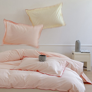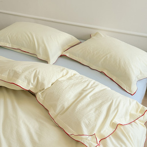 色织水洗棉四件套 跳色拷边工艺款日式透气纯棉被套床单床笠