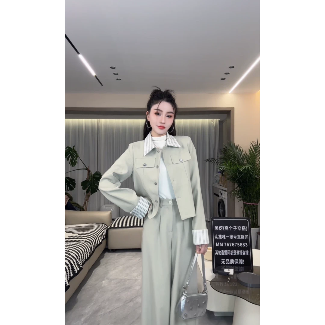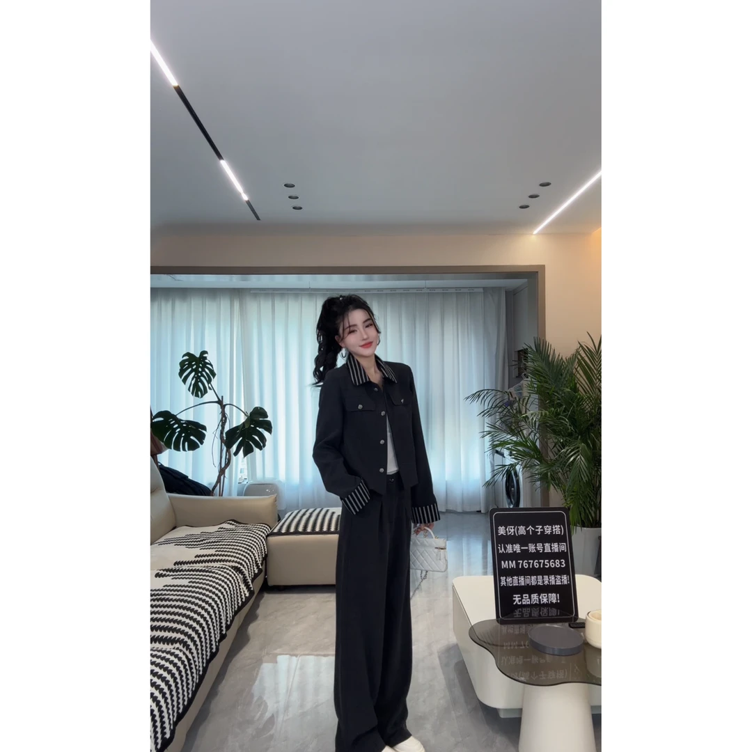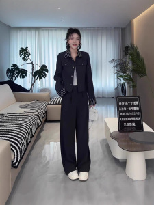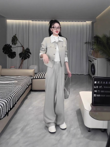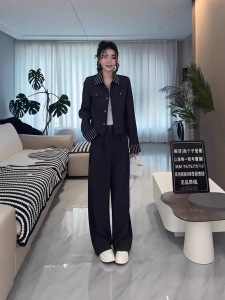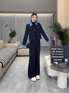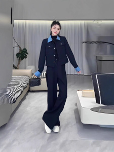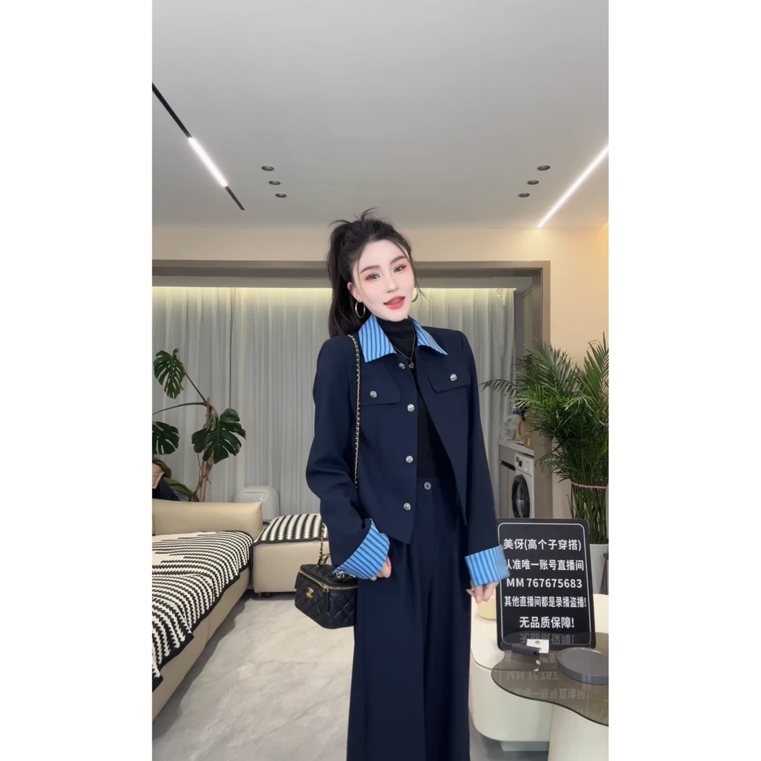 轻奢时尚西装套装女2025秋季新款气质拼接小西服职业阔腿裤两件套