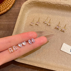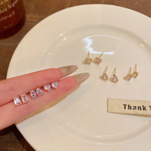 韩系精致微镶钻耳骨钉小众设计感多形状组合养耳洞耳环百搭耳饰品