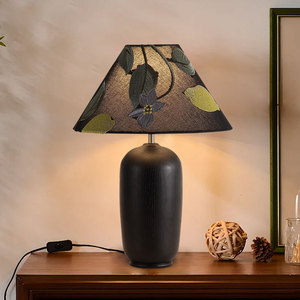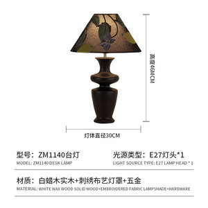 法式复古卧室台灯美式中古实木主卧床头侘寂风新中式书房布艺灯
