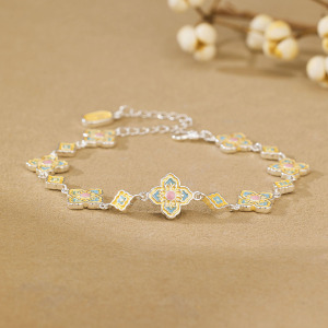 时尚简约珐琅描金四叶草手链女新中式风格气质手链珐琅四叶草手链