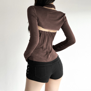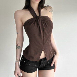 时尚2025秋季女装新款辣妹挂脖抹胸背心设计感修身短款上衣两件套