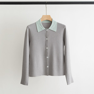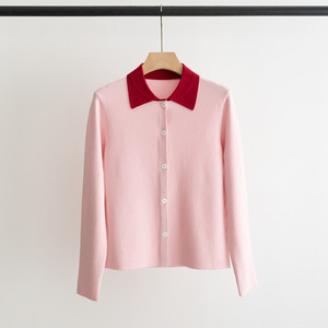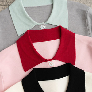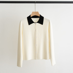 撞色翻领针织开衫秋季外套女高级感羊毛polo衫长袖衬衫上衣新款